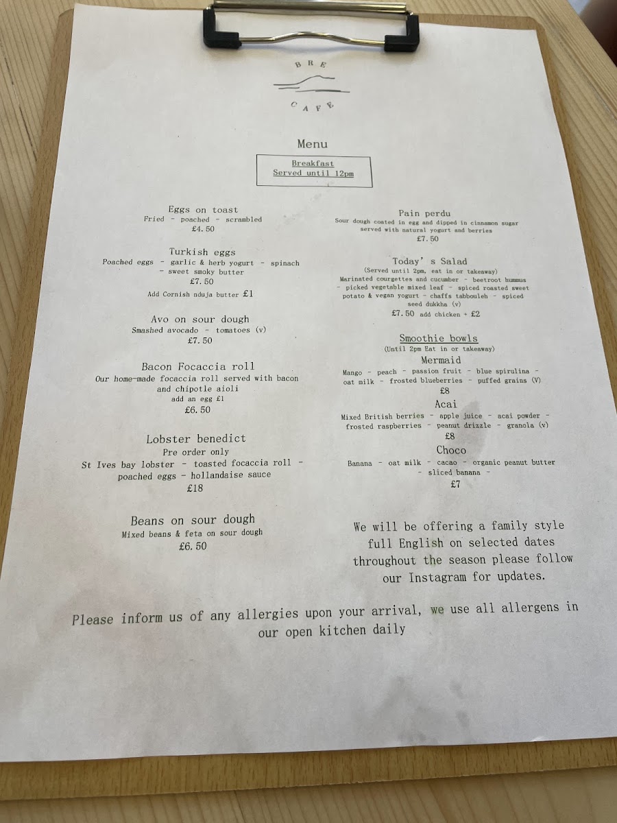 This menu is suitable for visitors looking for breakfast, brunch, or light meals, with options available for both quick orders and more relaxed dining experiences.